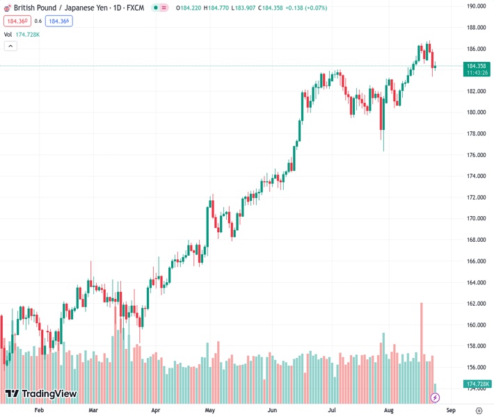 GBPJPY currently trading at 184.35 at the time of writing. Pair opened at 184.34 and is trading with a change of 0.01 % .