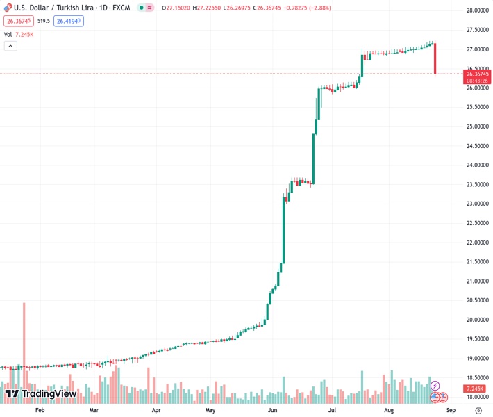 The Turkish lira bounces back after the decision made by the CBRT, with the exchange rate of USDTRY being 26.4028.