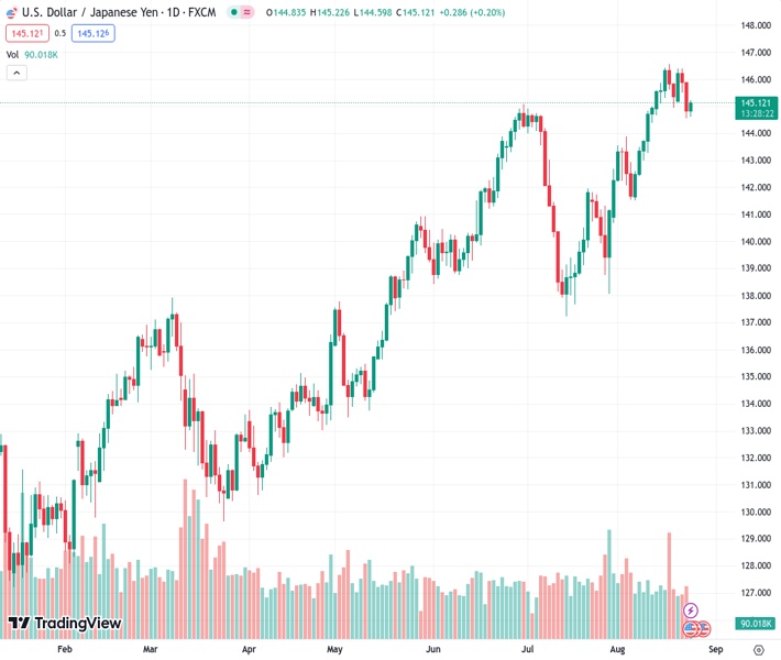 The pair currently trades last at 145.127.