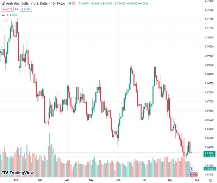 Danske Bank suggests that the decrease in the AUDUSD currency pair, currently valued at 0.64187, appears to be slightly exaggerated.