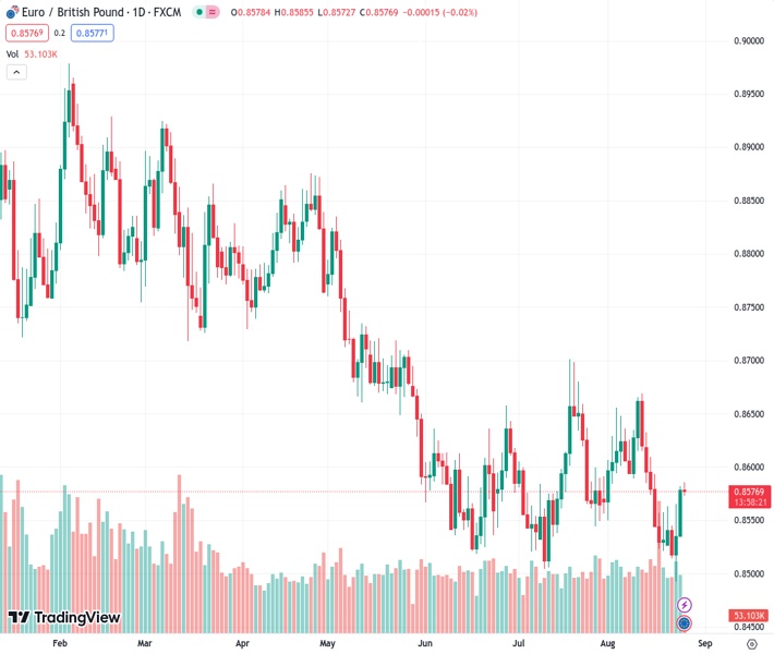 EURGBP currently trading at 0.8581 at the time of writing. Pair opened at 0.8579 and is trading with a change of 0.02 % .