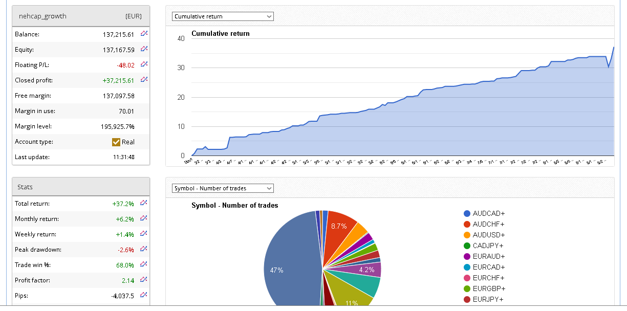 2. EA_GROWTH: An MT4 system running on our MT4.  Steady return system running for many months on our live account