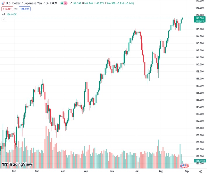 The pair currently trades last at 146.606.
