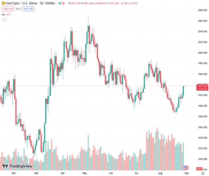 The price of gold, currently at $1,937.33 per ounce, remains strong at its highest level in three weeks as buyers aim to overcome the resistance level of $1,945. The viewpoint of Nehcap is that there is potential for further increases in the future.