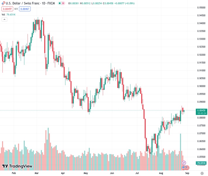 USDCHF currently trading at 0.8839 at the time of writing. Pair opened at 0.8839 and is trading with a change of 0.0 % .