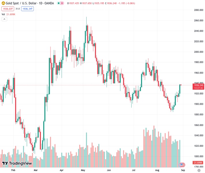 Gold is currently consolidating its recent increase above $1,930 fueled by the weakness of the USD.
