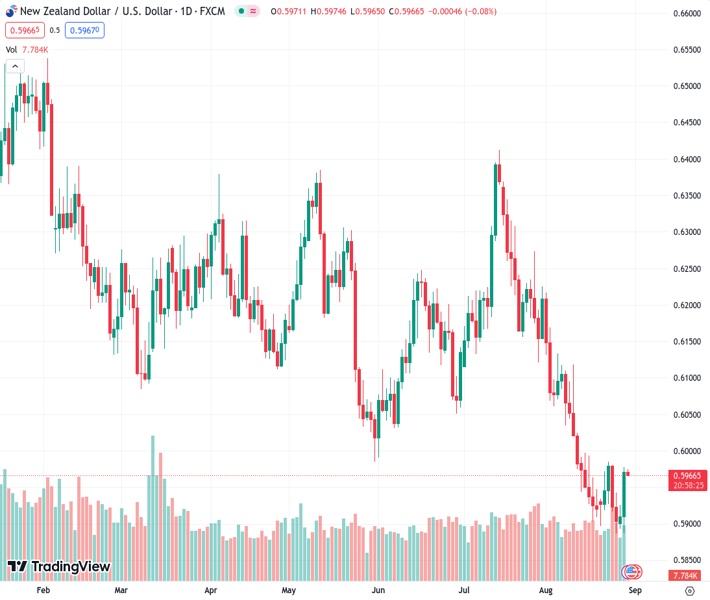 The NZD/USD pair attracts some buyers and gains momentum below the 0.6000 barrier during the early Asian session on Wednesday. The pair currently trades around 0.5971, up 0.01% on the day.