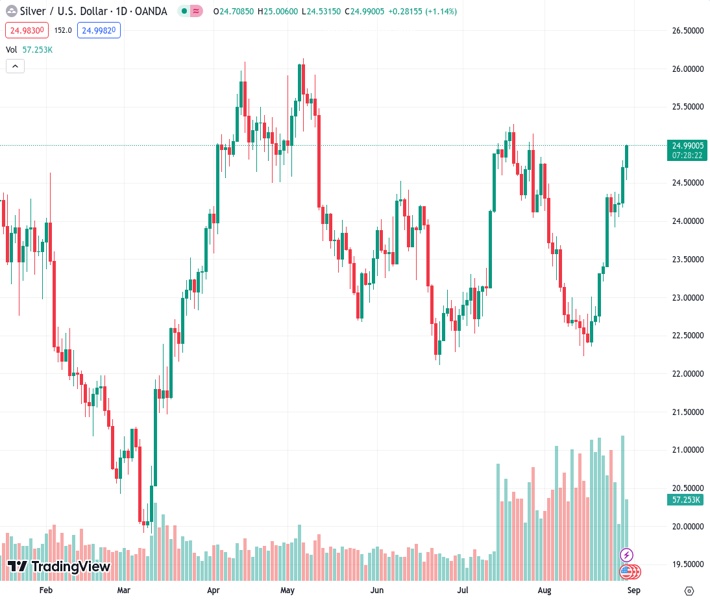 Silver price (XAG/USD) resumes its upside journey and looks set to recapture the psychological resistance of $25.00 in the early New York session. The white metal strengthens as United States Automatic Data Processing (ADP) reported fresh private employment additions in August were 177K, significantly lower than July’s reading of 324K. Investors projected 195K new private payrolls.