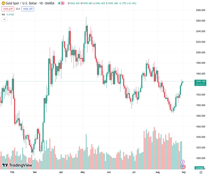 XAUUSD currently trading at 1944.32 at the time of writing. Pair opened at 1942.42 and is trading with a change of 0.10% % .
