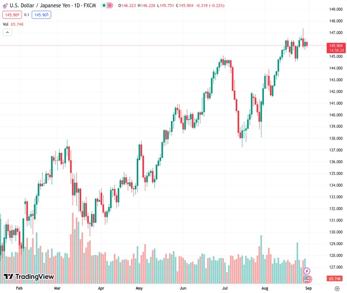 The pair currently trades last at 145.906.