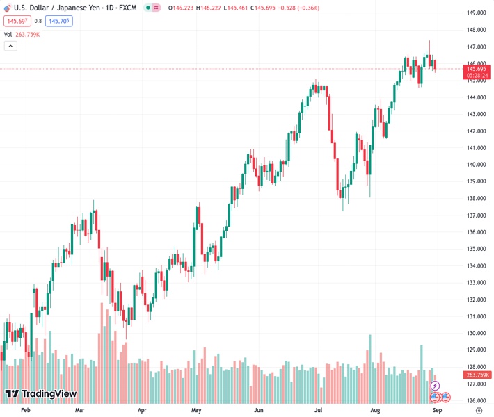 USDJPY currently trading at 145.58 at the time of writing. Pair opened at 146.24 and is trading with a change of -0.45 % .