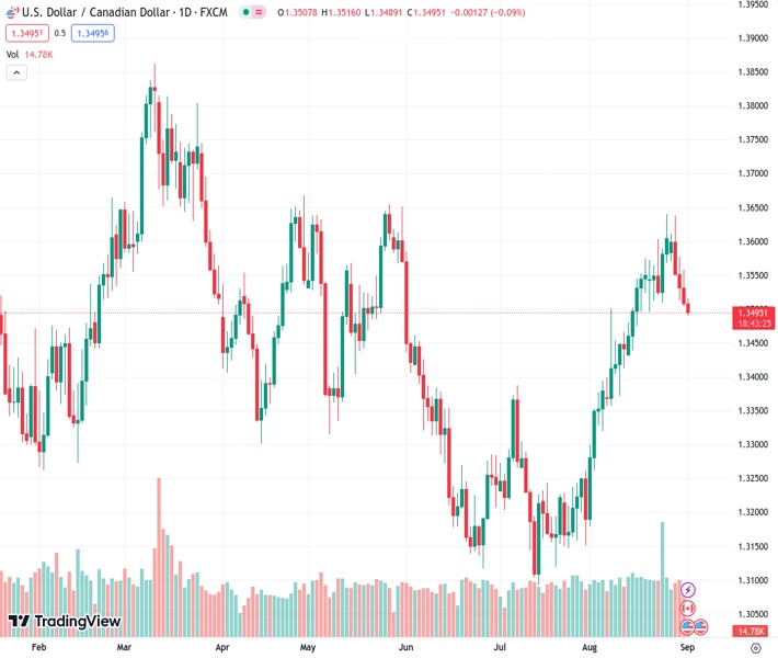 The USD/CAD pair loses traction and breaks below the 1.3500 area during the early Asian session on Friday. Market players await the highly-anticipated US Nonfarm Payrolls and Canadian Gross Domestic Product (GDP) for the second quarter. The annual growth number is expected to grow 1.2% from the previous reading and the US economy is expected to create 170K jobs in August. The pair currently trades around 1.3495, losing 0.10% on the day.