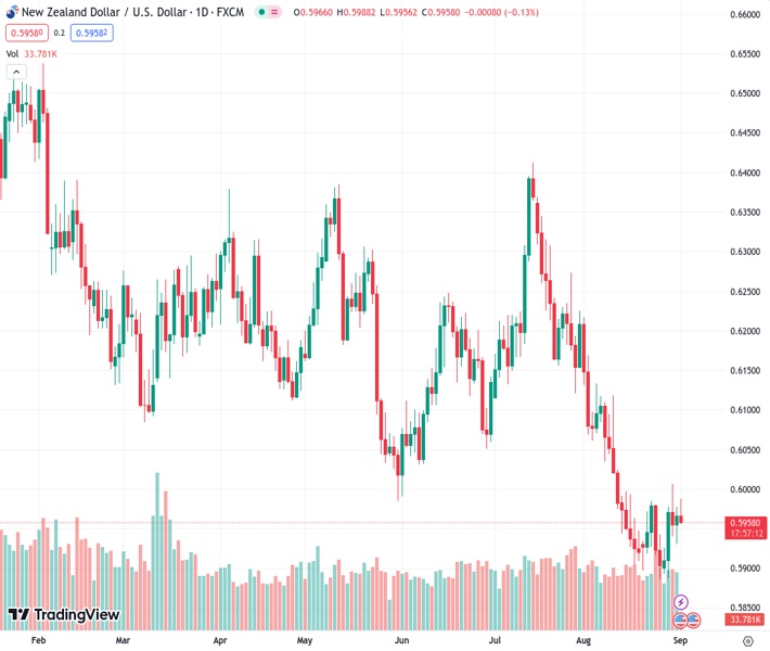 NZDUSD currently trading at 0.5974 at the time of writing. Pair opened at 0.5967 and is trading with a change of 0.12 % .