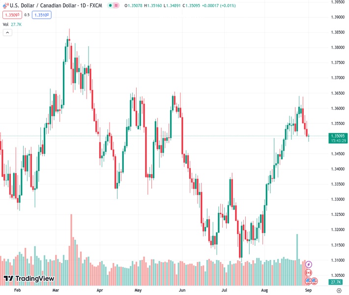The USDCAD pair, currently at 1.35095, is experiencing a lack of clear guidance, and this has resulted in a four-day losing streak. This lack of direction is the lowest the pair has experienced in two weeks.