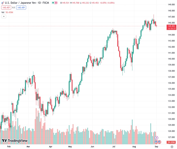 USDJPY currently trading at 145.47 at the time of writing. Pair opened at 145.54 and is trading with a change of -0.05 % .