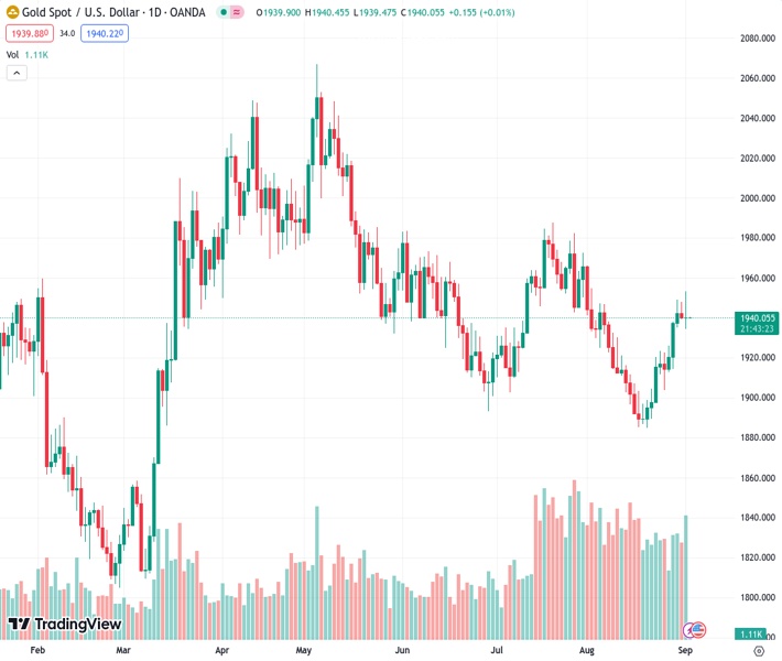 The price of gold, denoted by #XAUUSD, is staying steady at approximately $1,940 after experiencing a period of uncertainty.