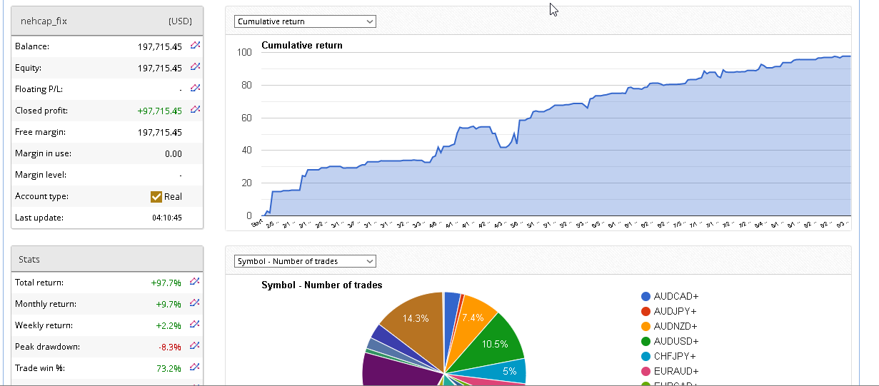 The EA_FIX system is up +97.7% return in last 8 months and continues to be the best forex trading system available for purchase and deployment.