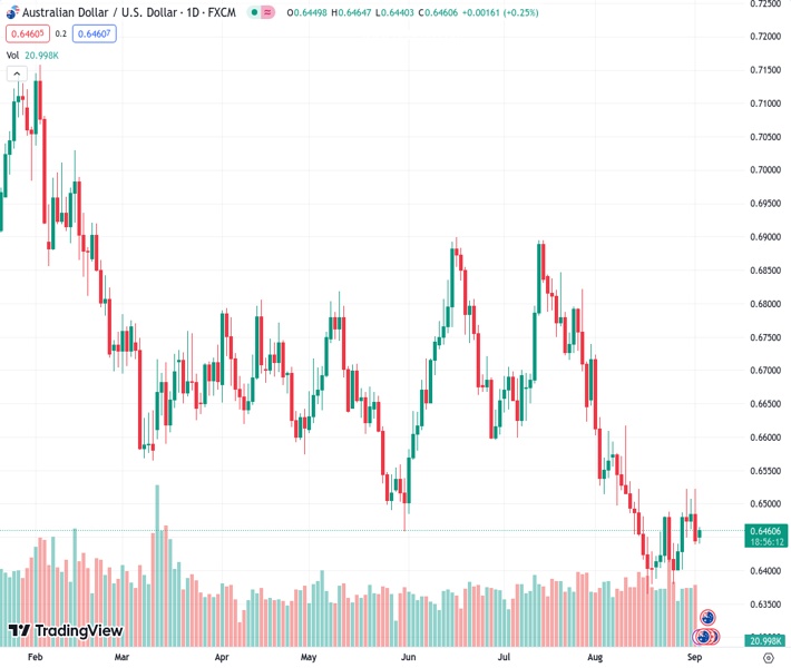 The AUD/USD pair attracts some dip-buying near the 0.6440 area or a four-day low touched during the Asian session on Monday and stalls last week’s modest pullback from the 0.6520 region, or its highest level since August 11. Spot prices currently trade near the 0.6465 zone, up just over 0.10% for the day, and draw support from subdued US Dollar (USD) price action.