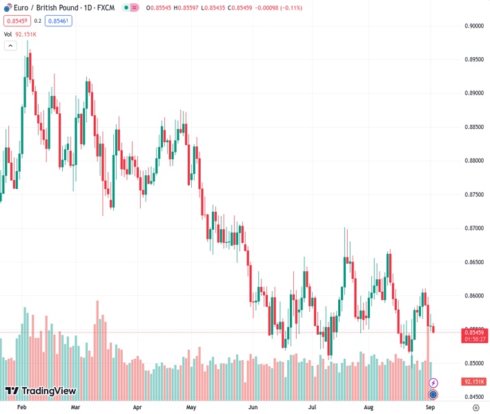 The Euro (EUR) loses ground against the Pound Sterling (GBP) amid a risk-on impulse, as well as expectations for interest rates staying unchanged by the European Central Bank (ECB). At the same time, the Bank of England (BoE) is seen by market analysts as the only one to raise rates by 25 bps in September. That, alongside technical resistance, dragged the EUR/GBP to a new seven-day low, as the pair trades at 0.8546 after hitting a high of 0.8559.