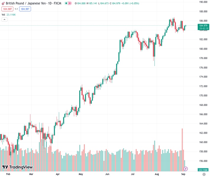 GBPJPY currently trading at 185.05 at the time of writing. Pair opened at 184.9 and is trading with a change of 0.08% % .