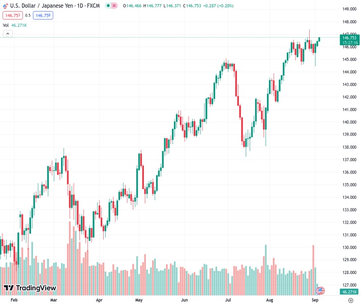USDJPY currently trading at 146.75 at the time of writing. Pair opened at 146.49 and is trading with a change of 0.18 % .
