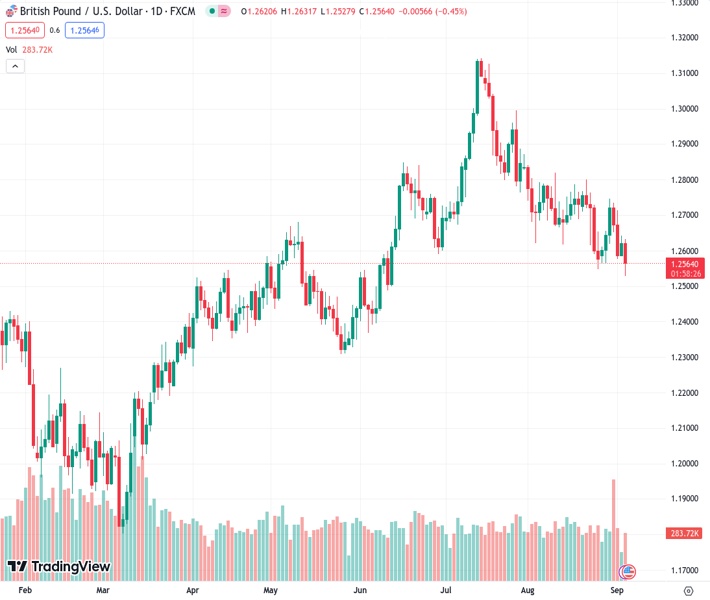 The GBPUSD pair, currently at 1.2567, has declined by 0.42% as the United Kingdom’s S&P Global/CIPS Composite PMI falls to 48.6. This marks the first time since January that the PMI has entered into contraction territory.