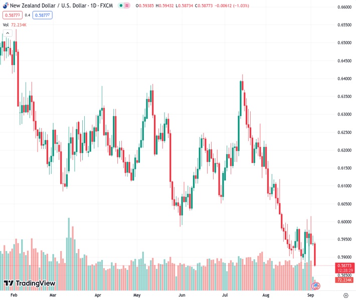 The NZD/USD currency pair remains within a limited range, according to UOB, with the current rate at 0.58749.