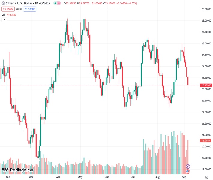 On Wednesday, the value of XAGUSD dropped by over 1.50%, reaching approximately $23.00.