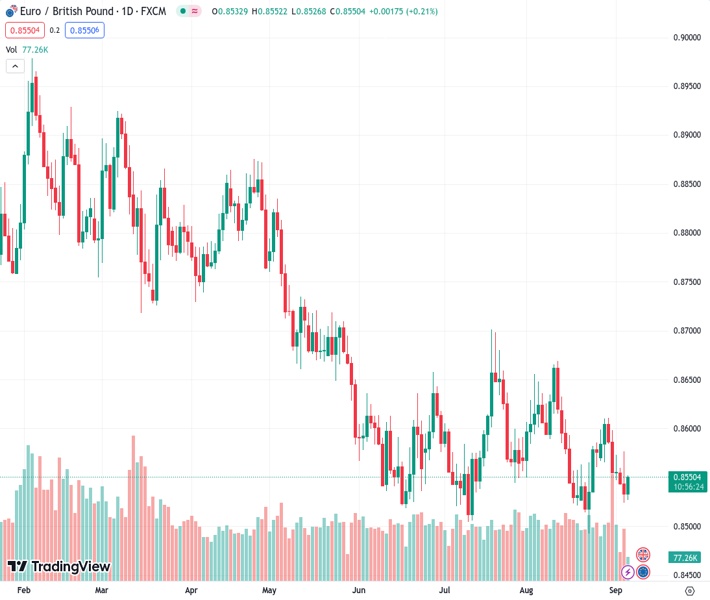 The EUR/GBP pair finds some selling pressure near 0.8550 after recovering from a two-week low around 0.8534 in the European session. The cross faces pressure as Eurozone Retail Sales for July contracted as expected by market participants.