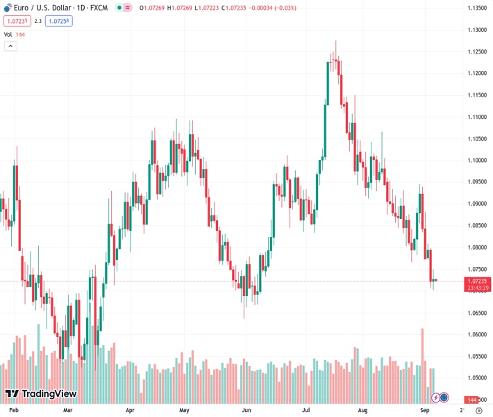 EURUSD currently trading at 1.0725 at the time of writing. Pair opened at 1.0722 and is trading with a change of 0.03 % .