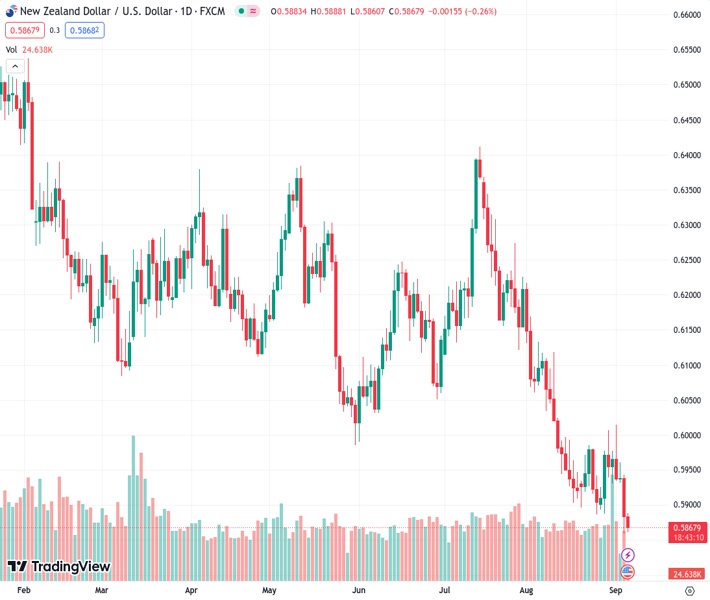NZDUSD currently trading at 0.5863 at the time of writing. Pair opened at 0.5883 and is trading with a change of -0.34 % .