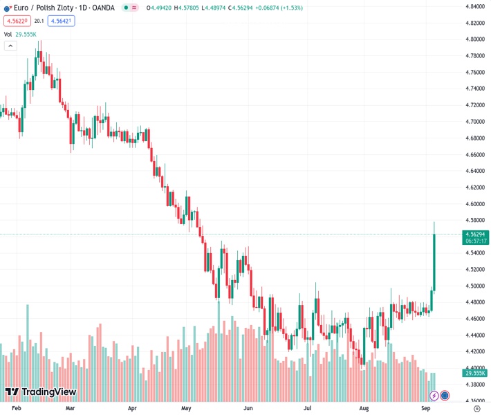 EUR/PLN rose to levels last seen in early May around the 4.5700 zone in response to the unexpected interest rate cut by the National Bank of Poland (NBP).