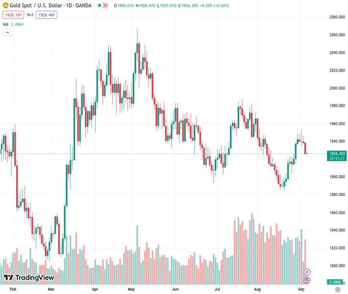 The price of gold, currently at 1,926.26 in the XAUUSD market, remains low for the week after experiencing four consecutive days of losses. The viewpoint of @nehcap is that there is not expected to be a significant decrease in value.