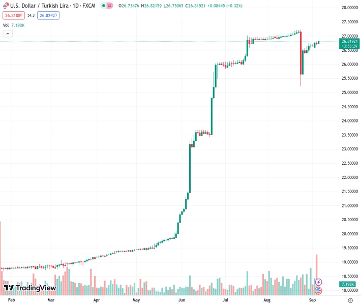 The USDTRY pair is experiencing an increase in buying interest, pushing it to a new high for the past two weeks. This follows a period of consolidation after a decline in late August.