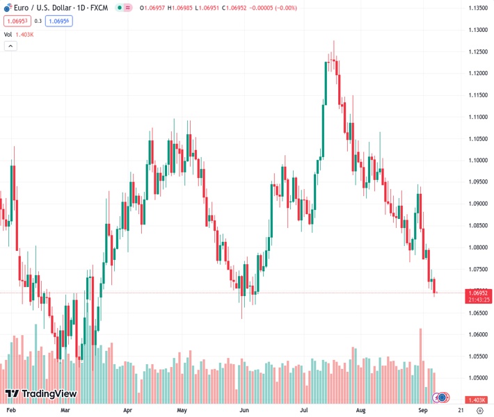 EURUSD currently trading at 1.0696 at the time of writing. Pair opened at 1.0727 and is trading with a change of -0.29 % .