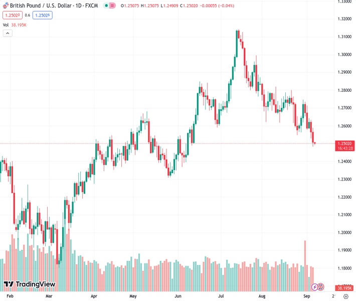 The GBP/USD pair consolidates its recent losses around 1.2500 during the Asian session on Thursday. Meanwhile, the US Dollar Index (DXY), a measure of the value of USD against six other major currencies, hovers around 104.80 after retreating from the highest level since March. The strength of the Greenback is bolstered by the upbeat US ISM Services PMI, which came in better than expected and improved to a six-month high level of 54.5 in August.