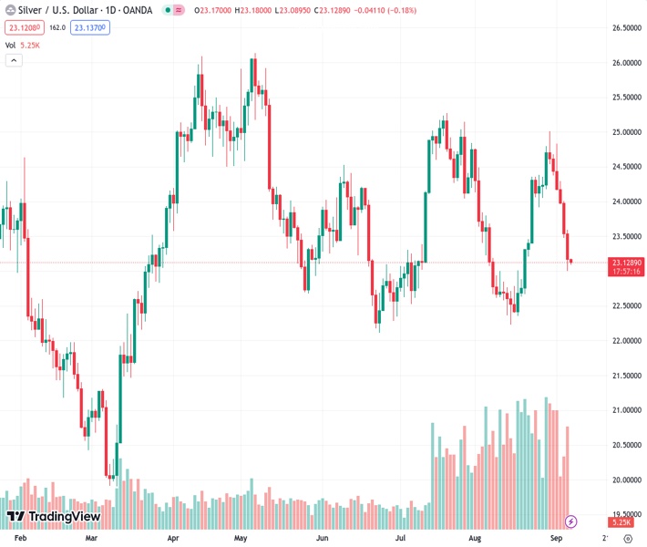 XAGUSD currently trading at 23.12 at the time of writing. Pair opened at 23.18 and is trading with a change of -0.26% % .
