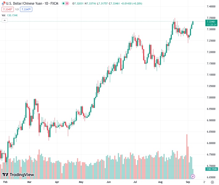 The USDCNH pair, currently at 7.33518, might potentially return to the 7.3500 area, according to UOB.