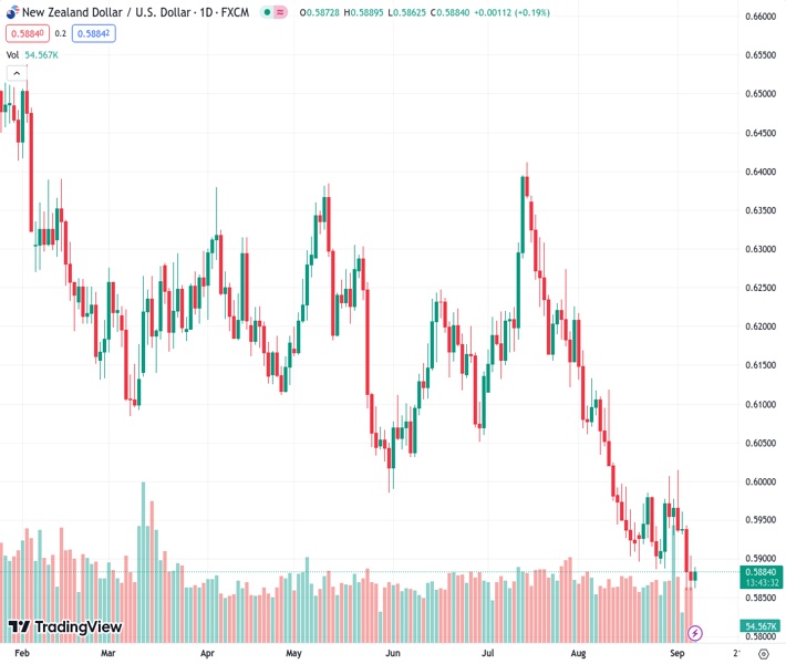 UOB suggests that there is a possibility of further decline in the near term for the NZDUSD, currently trading at 0.58842.