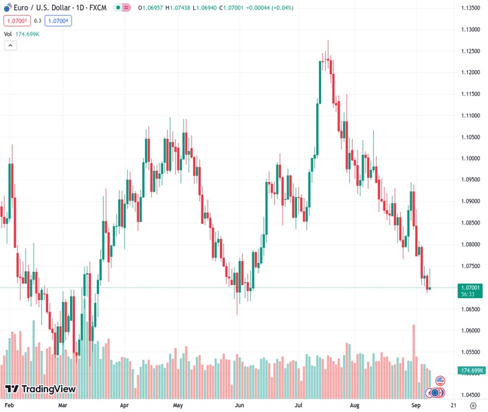 EURUSD currently trading at 1.0698 at the time of writing. Pair opened at 1.0696 and is trading with a change of 0.02 % .
