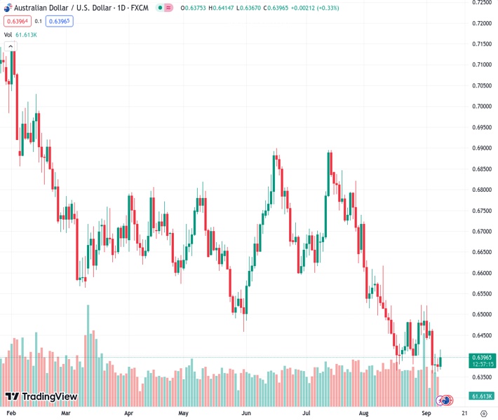 AUDUSD currently trading at 0.6394 at the time of writing. Pair opened at 0.6376 and is trading with a change of 0.28 % .