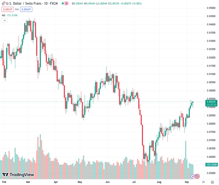 The USD to CHF exchange rate increased slightly from 0.89346 to 0.8930, resulting in modest gains.