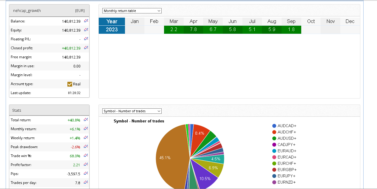 September returns have crossed +1.8% on our live account with dd under 1%.