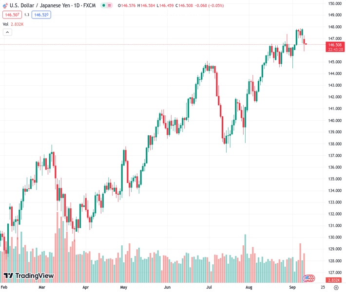 The currency flows are reversed due to the strengthening of the Yen and the weakening of the US dollar in the USDJPY pair at a rate of 146.481.
