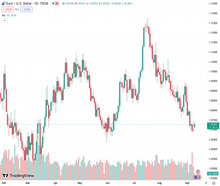 EURUSD currently trading at 1.0728 at the time of writing. Pair opened at 1.0701 and is trading with a change of 0.25 % .