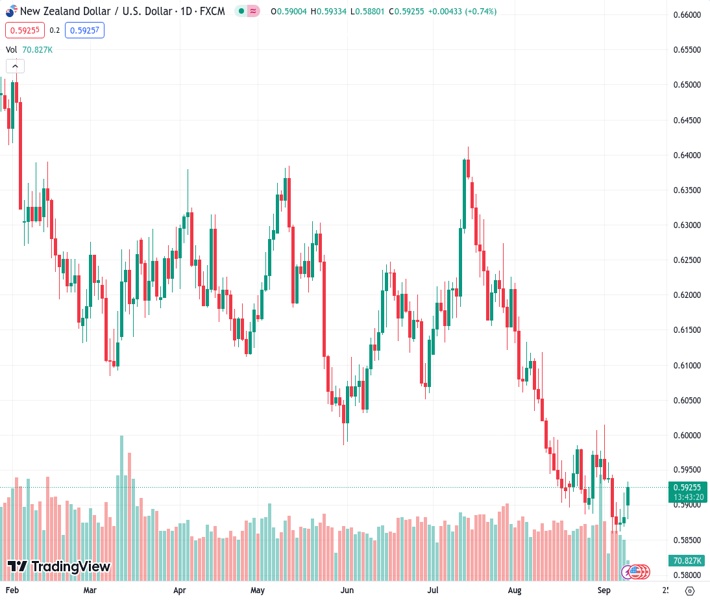 NZD/USD extends gains in the third trading session, trading higher around 0.5930 during the Asian session on Monday as a result of the retreat in the US Dollar (USD). This pair is experiencing upward support due to the reduced likelihood of the US Federal Reserve (Fed) maintaining unchanged interest rates in the upcoming September meeting.