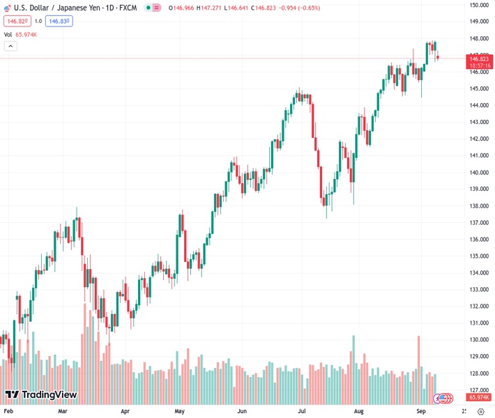 USDJPY currently trading at 146.94 at the time of writing. Pair opened at 147.84 and is trading with a change of -0.61 % .