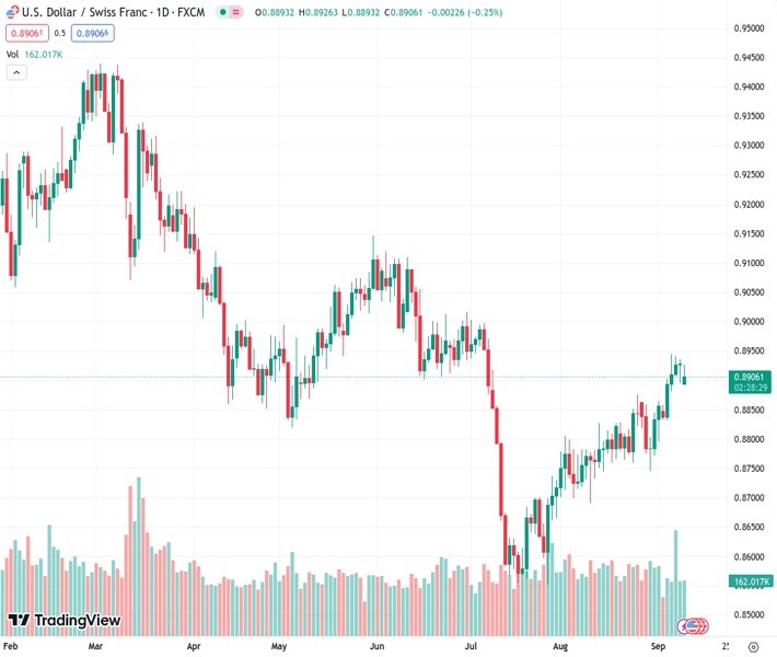 - USD/CHF trades at 0.8908, unable to break the 0.9000 level.