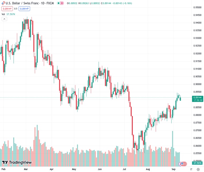 USDCHF currently trading at 0.8914 at the time of writing. Pair opened at 0.893 and is trading with a change of -0.18 % .