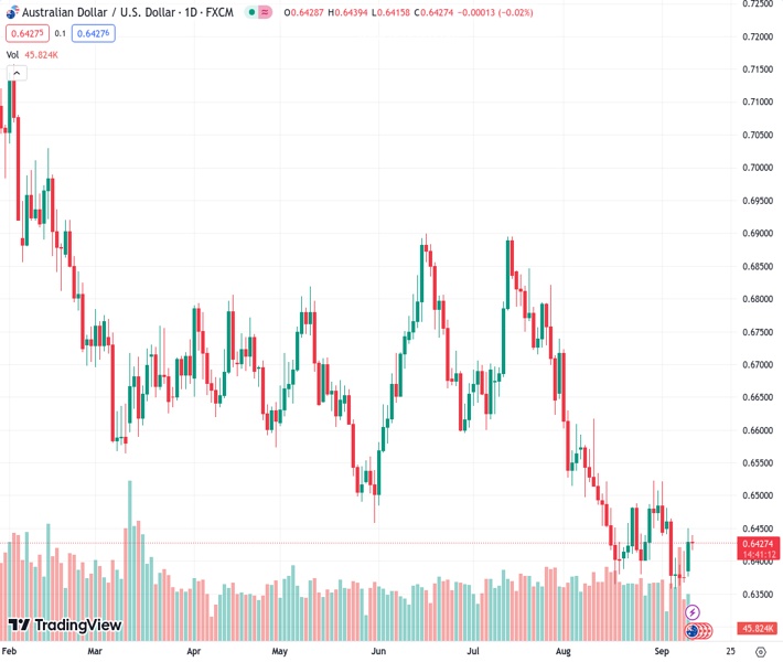 AUDUSD currently trading at 0.6424 at the time of writing. Pair opened at 0.6435 and is trading with a change of -0.17 % .